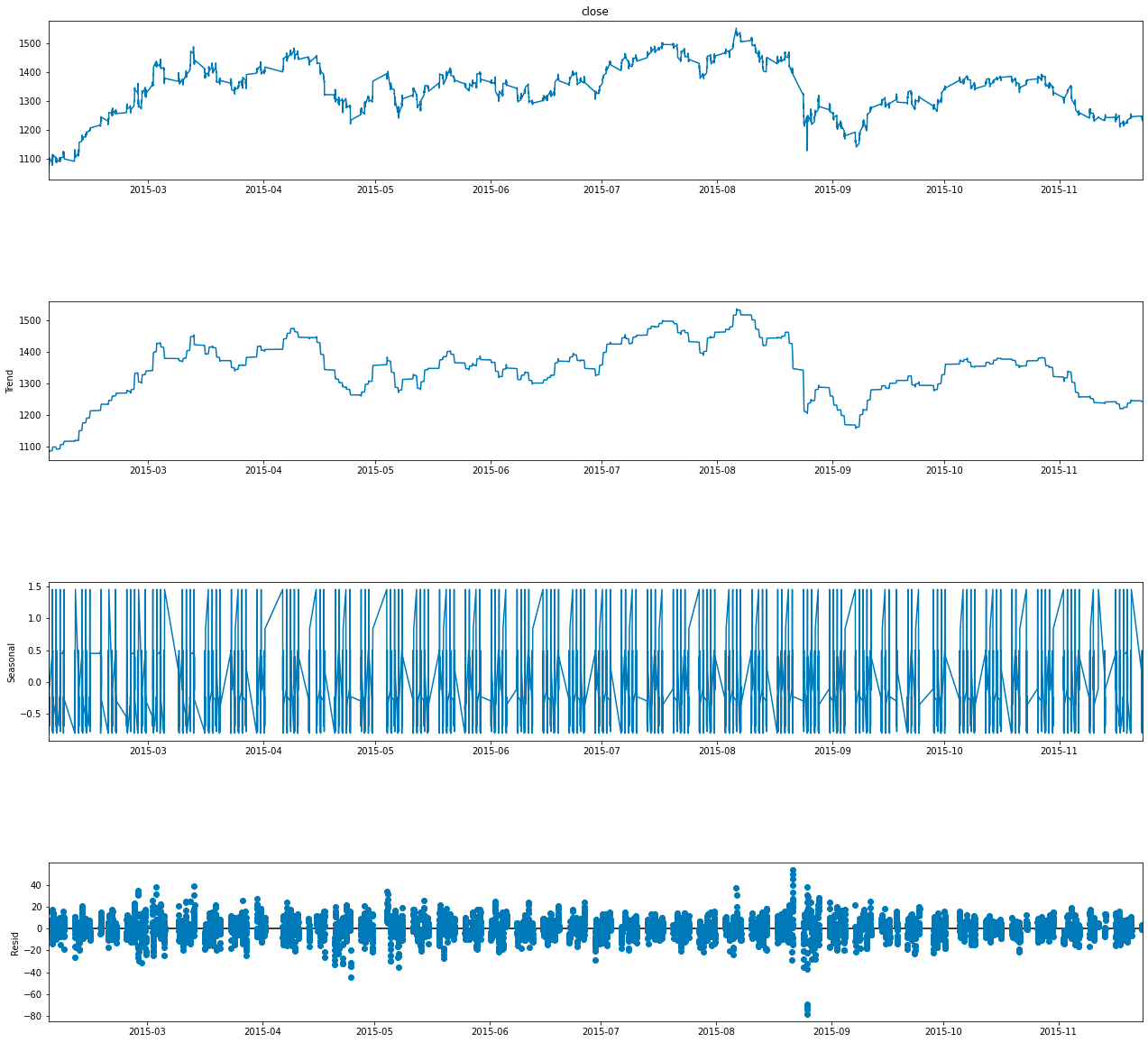 fig.set_size_inches(20, 19)This code pertains to the analysis of a time series dataset, with particular emphasis on identifying and visualizing its underlying components.