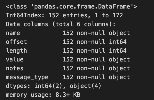 A data source filtered by a specific date is used to retrieve messages, which are stored in the messages variable. The info method is then called on the messages object to provide a summary of its contents. This allows for an assessment of data completeness by showing null_counts=True for each column.