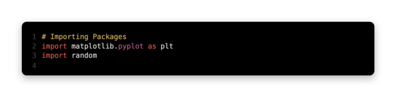 We’ll simulate our game to see if the player made the right decision. As a first step, we import two Python packages: Pyplot from Matplotlib and random. Our results will be visualized using Pyplot and simulated using random to represent a normal six-sided die roll.