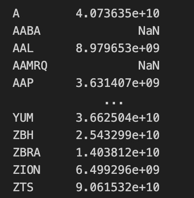 cap_map[ticker] = info.get(”marketCap”, np.nan)
