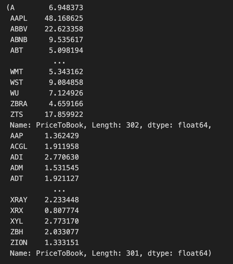 pb_map[ticker] = info.get(”priceToBook”, np.nan)