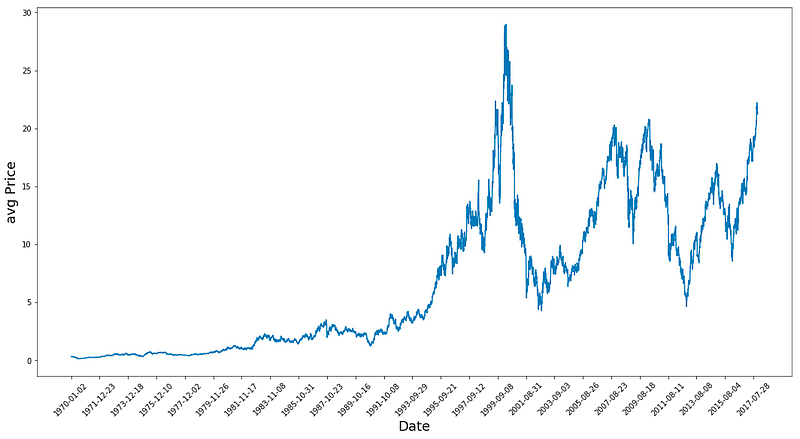 For clarity’s sake, it assigns the ‘Date’ moniker to the x-axis and ‘avg Price’ to the y-axis labels.