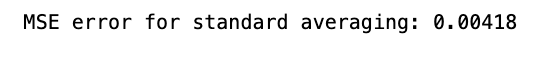 Finally, it calculates the overall MSE for the standard averaging method by averaging all MSE errors obtained, halving the result.