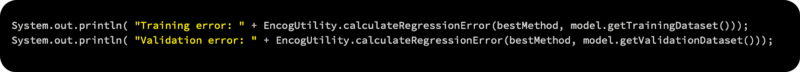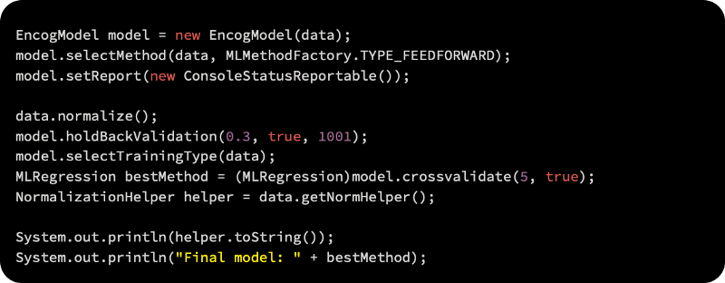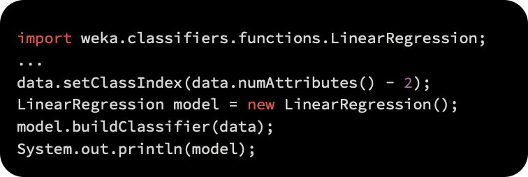 Our approach will be similar to that used in the classification example by creating a new model instance, passing the parameters and data, and then calling buildClassifier(Instances):