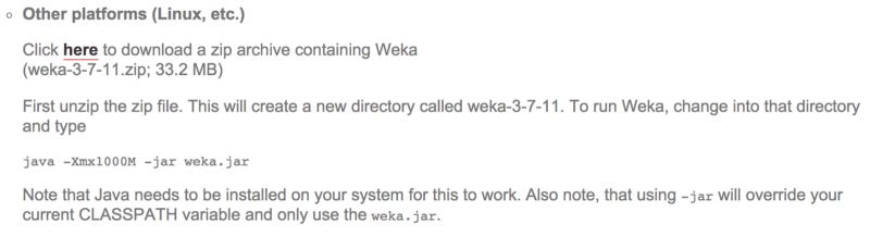 You can download the file in multiple ways. Make sure you download the ZIP archive rather than the self-extracting executables since you will be using Weka as a library in your source code. You can find weka.jar within the extracted archive if you unzip the archive: