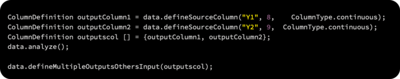 The defineMultipleOutputsOthersInput function can be used to add the two outputs, Y1 and Y2, as follows: