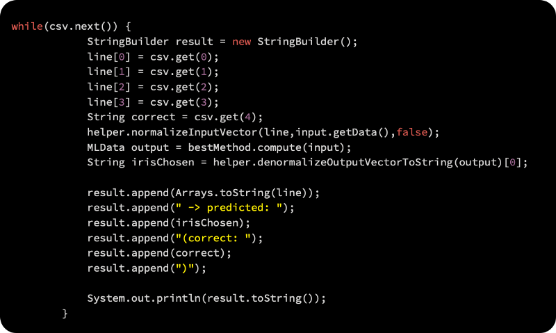 In the next section, you will learn how to assign an unknown class label to a new example using a trained model.