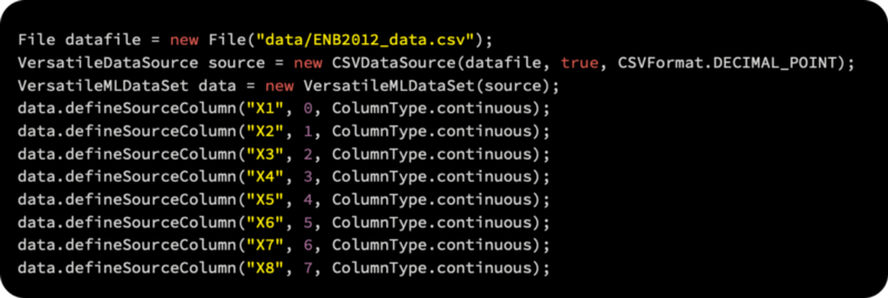 All four columns will be defined using the VersatileMLDataSet method. Using the analysis method, we can find the statistical parameters in the file, such as mean, variance, and standard deviation: