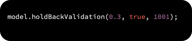 As the next step, a training set is used to fit the model, leaving a test set aside. According to the first argument, 0.3, we will hold 30% of the data; the next argument specifies to shuffle the data randomly. A holdback validation model is used because 1001 says there is a seed value of 1001.