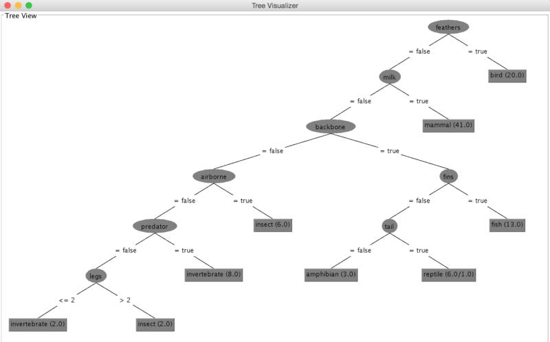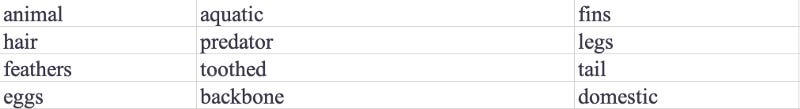Using all the other attributes as inputs, we will build a model to predict the outcome variable, animal.