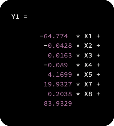 By combining the input variables linearly, the linear regression model estimates the heating load. In addition to the sign and magnitude, the number in front of the feature describes how the feature affects the target variable. A negative correlation exists between the relative compactness of feature X1 and the heating load, while a positive correlation exists between the glazing area and the heating load. The final estimate of the heating load is also affected by these two factors. By using cross-validation, the performance of the model can also be evaluated.