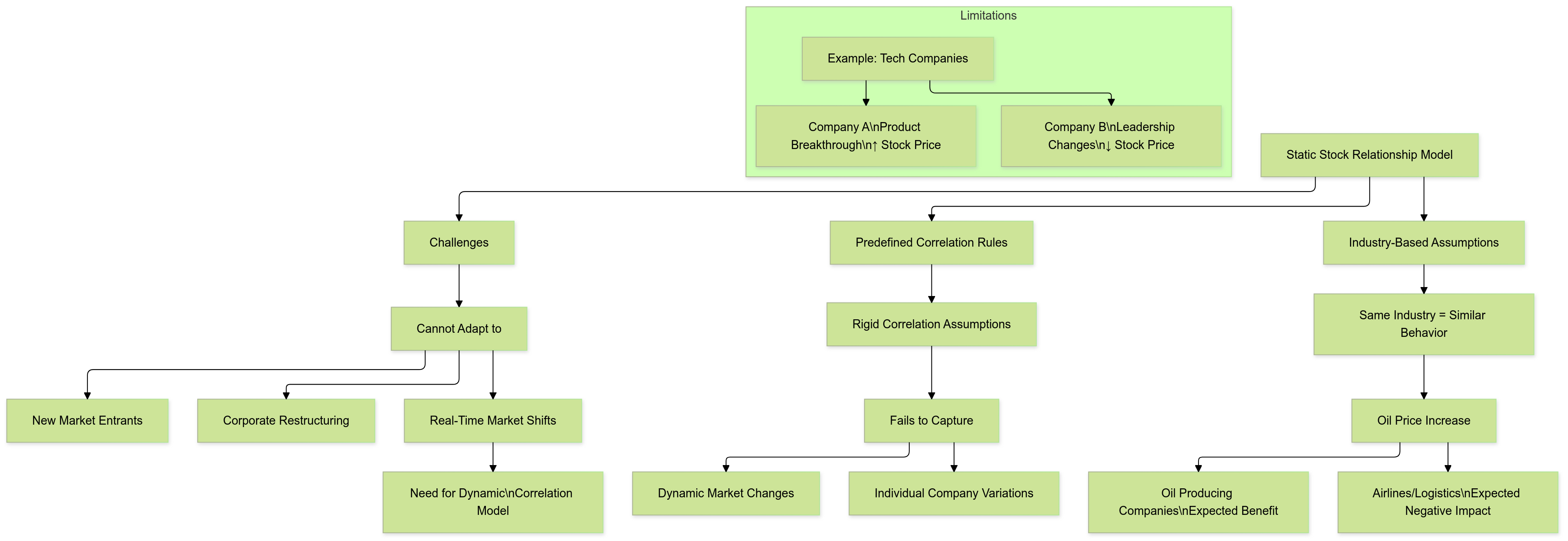 Moreover, static relationships struggle to accommodate new stocks or industries entering the market. For instance, a company’s IPO (initial public offering) or a major corporate restructuring can significantly alter its correlation with other stocks. Static assumptions often overlook such changes, leading to outdated and inaccurate predictions. A more flexible approach is needed — one that identifies stock correlations dynamically, reflecting real-time market behaviors rather than predefined, fixed rules.