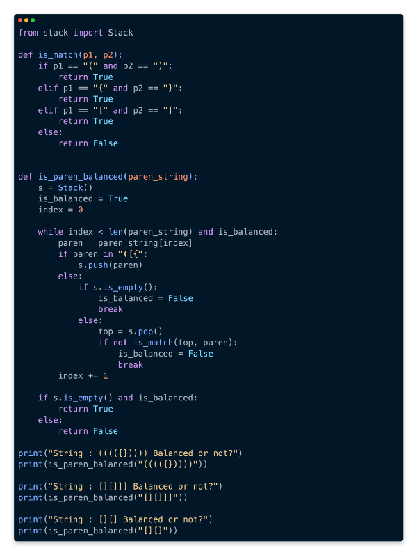 In this lesson, we are going to take advantage of the stack data structure that we defined in the previous lesson in order to investigate whether or not a set of brackets is balanced or not.