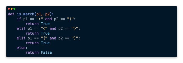 This function evaluates whether p1 and p2 are valid brackets given two characters as input. The opening bracket in p1 must be an opening bracket, while the closing bracket in p2 must be the corresponding closing bracket. Our return value is False if p1 and p2 do not meet any of the valid conditions.