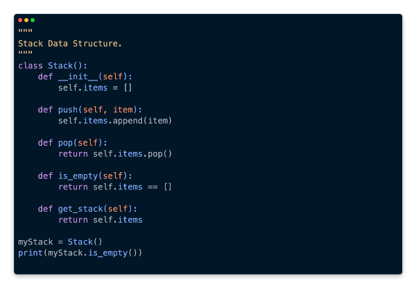 We have a solid understanding of the stack’s core fundamentals. Additionally, we can include a method called is_empty in this, which would be helpful. If the stack is empty, it will return true.