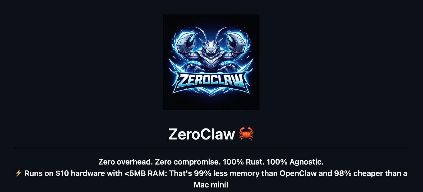 description = “Zero overhead. Zero compromise. 100% Rust. The fastest, smallest AI assistant.”