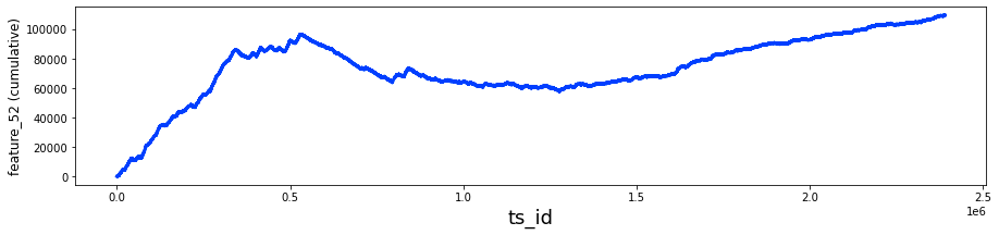 The x-axis is designated with the label ts_id, likely indicating a time series identifier, while the y-axis is labeled feature_52 (cumulative). These labels serve to clarify the information depicted in the plot.