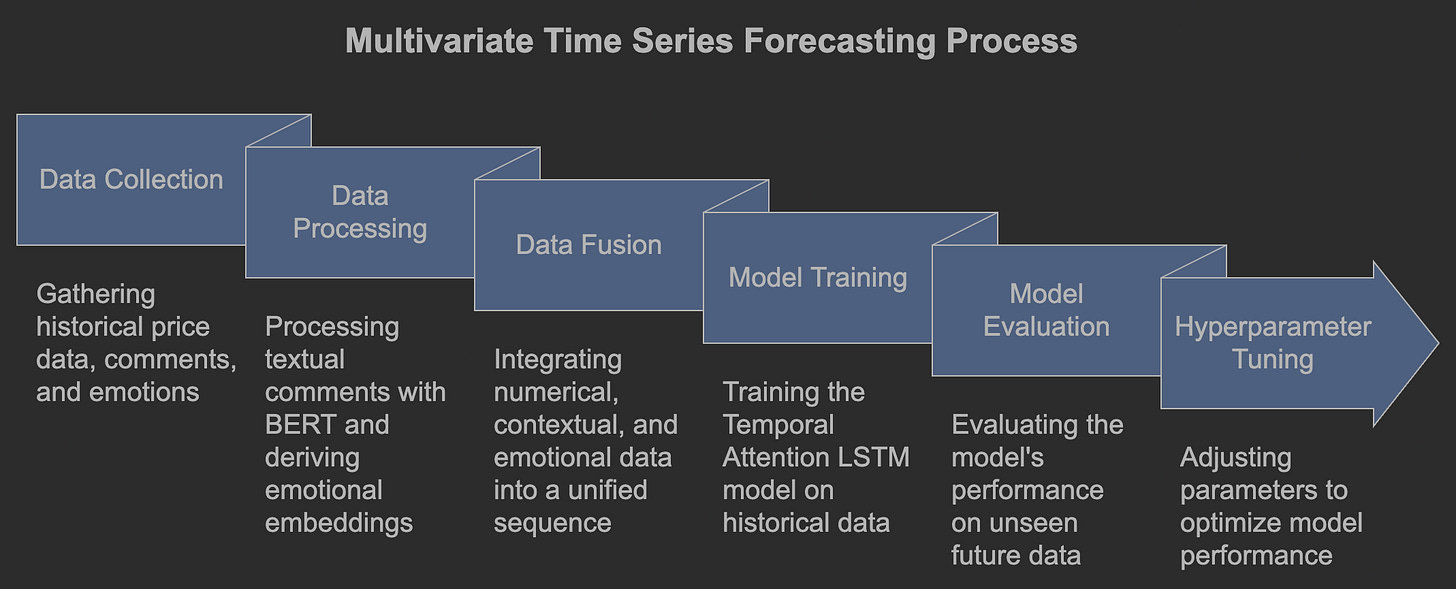 The multivariate time series forecasting task aimed to predict the S&P 500 index by integrating historical price data, textual comments, and emotion features derived from the StockEmotions dataset. This task was designed to evaluate whether incorporating emotional insights alongside traditional numerical data could enhance the accuracy of market predictions. To address this, we developed a Temporal Attention Long Short-Term Memory (LSTM) model that seamlessly integrates multiple data modalities.