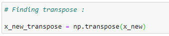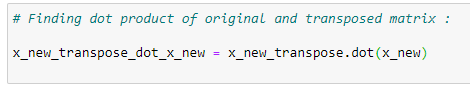 x_new_transpose = np.transpose(x_new)# Finding dot product of original and transposed matrix :
