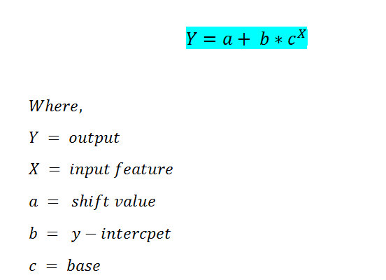 The formula for exponential regression is as follow: