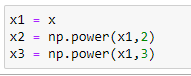 x3 = np.power(x1,3)# Reshaping data: