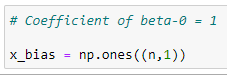 x_bias = np.ones((n,1))# Form the complete x matrix: