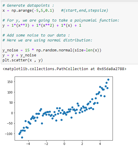y = 1*(x**3) + 1*(x**2) + 1*x + 3+y_noise