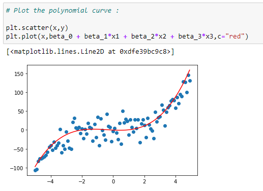 beta_3 = theta[3]# Plot the polynomial curve: