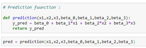 pred = prediction(x1,x2,x3,beta_0,beta_1,beta_2,beta_3)