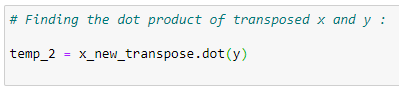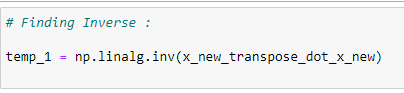 temp_1 = np.linalg.inv(x_new_transpose_dot_x_new)# Finding the dot product of transposed x and y :