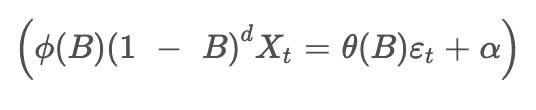 Combining these components, the ARIMA model can be expressed as