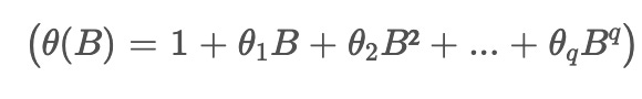 In this equation, (θi) are the parameters of the moving average model, representing the impact of the i-th lagged forecast error on the current value.