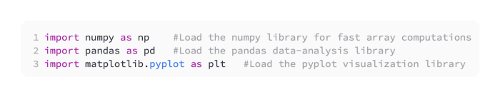 The first step is to import numpy and matplotlib. Using the %matplotlib inline command, you can view visualizations within an IPython Notebook: