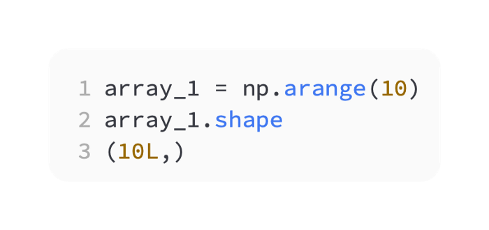 Shape is the data attribute of the array. In this case, array_1.shape is a tuple (10L), which has length 1. In this case, there is only one dimension, which is the tuple’s length: