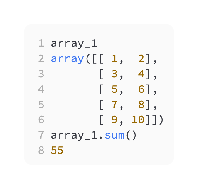 Using the sum method, add all the elements of the array. Here is array_1 again:
