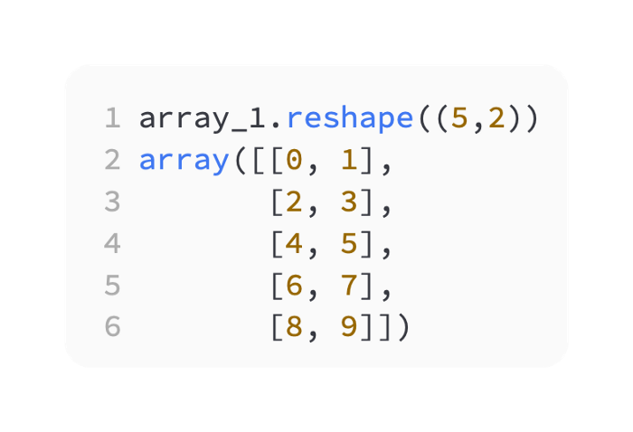 Ten elements make up the array. By calling the reshape method, you can reshape the array:
