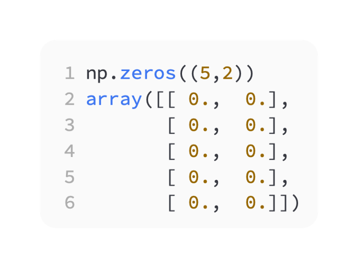 Using np.zeros, initialize a zero array. Zeros are created by the command np.zeros((5,2)):