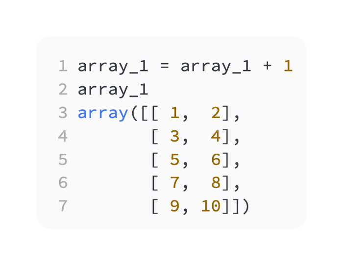 It is important to note that array_1 has become two-dimensional. In this case, it makes sense, since its shape is a list of lists and has two numbers: