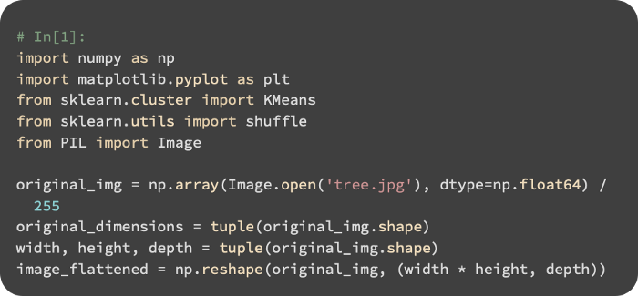 In previous sections, we explored dataset structure using clustering. Now let’s apply it to another problem. Image quantization is a method for reducing the number of colors in an image by replacing a range of similar colors with one color. Because fewer bits are required to represent colors, quantizing reduces the size of the image file. This example illustrates how clustering can be used to discover an image’s most important colors using a compressed palette. The compressed palette will then be used to rebuild the image.