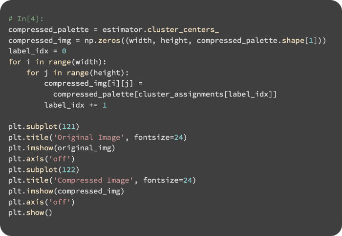 After creating the compressed palette and cluster assignments, we create the compressed image: