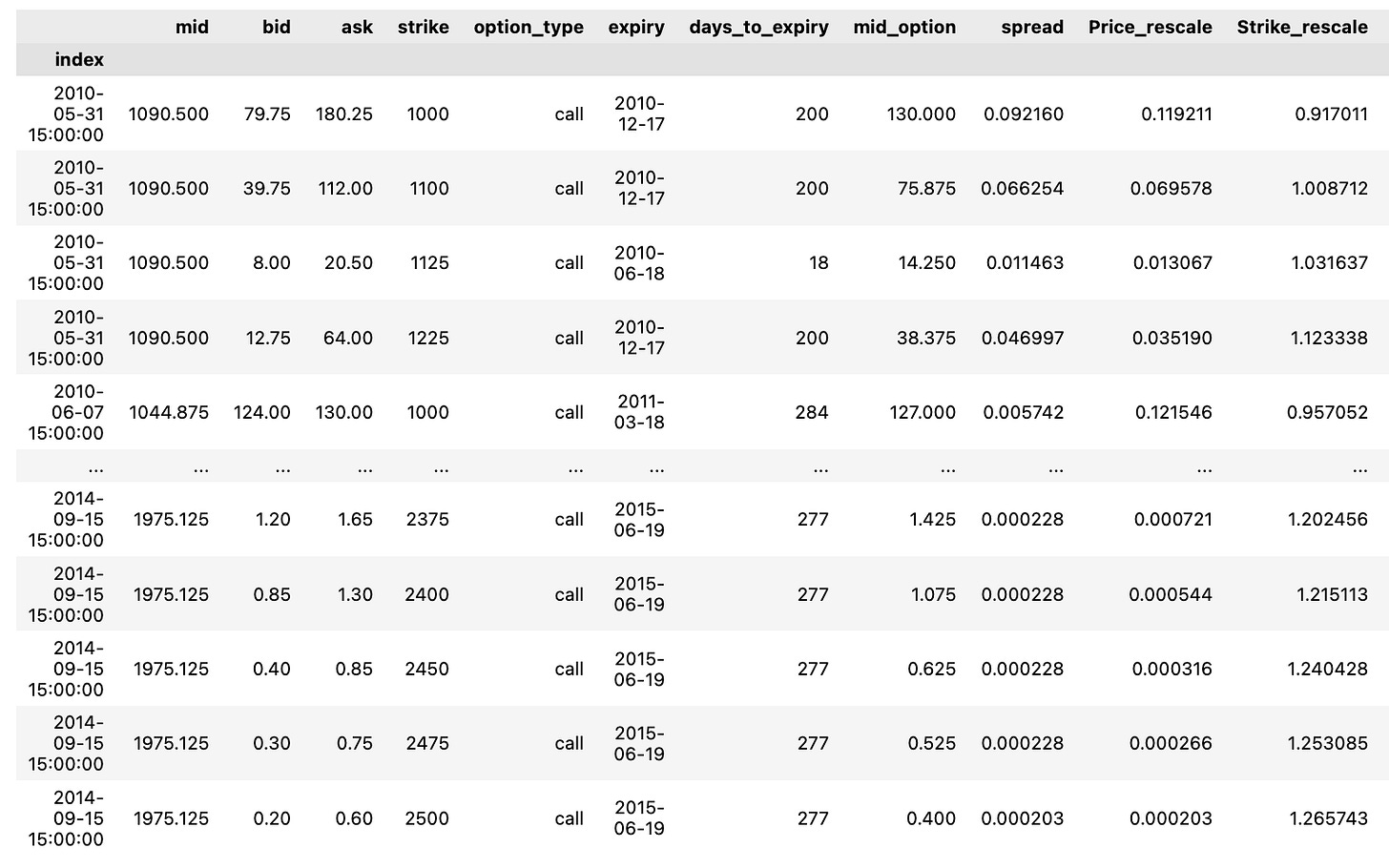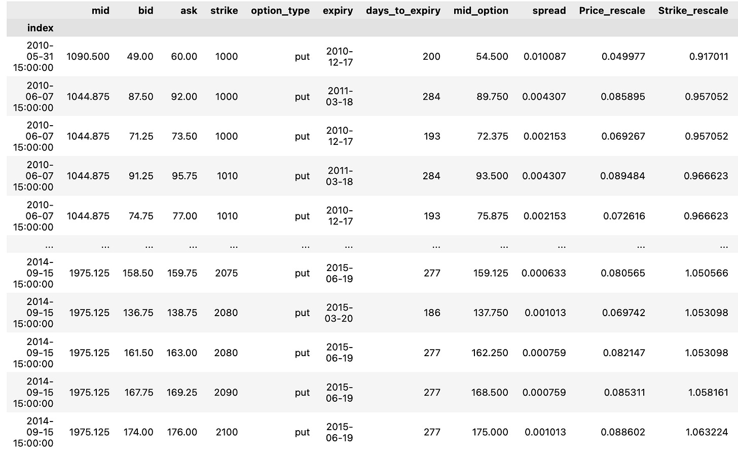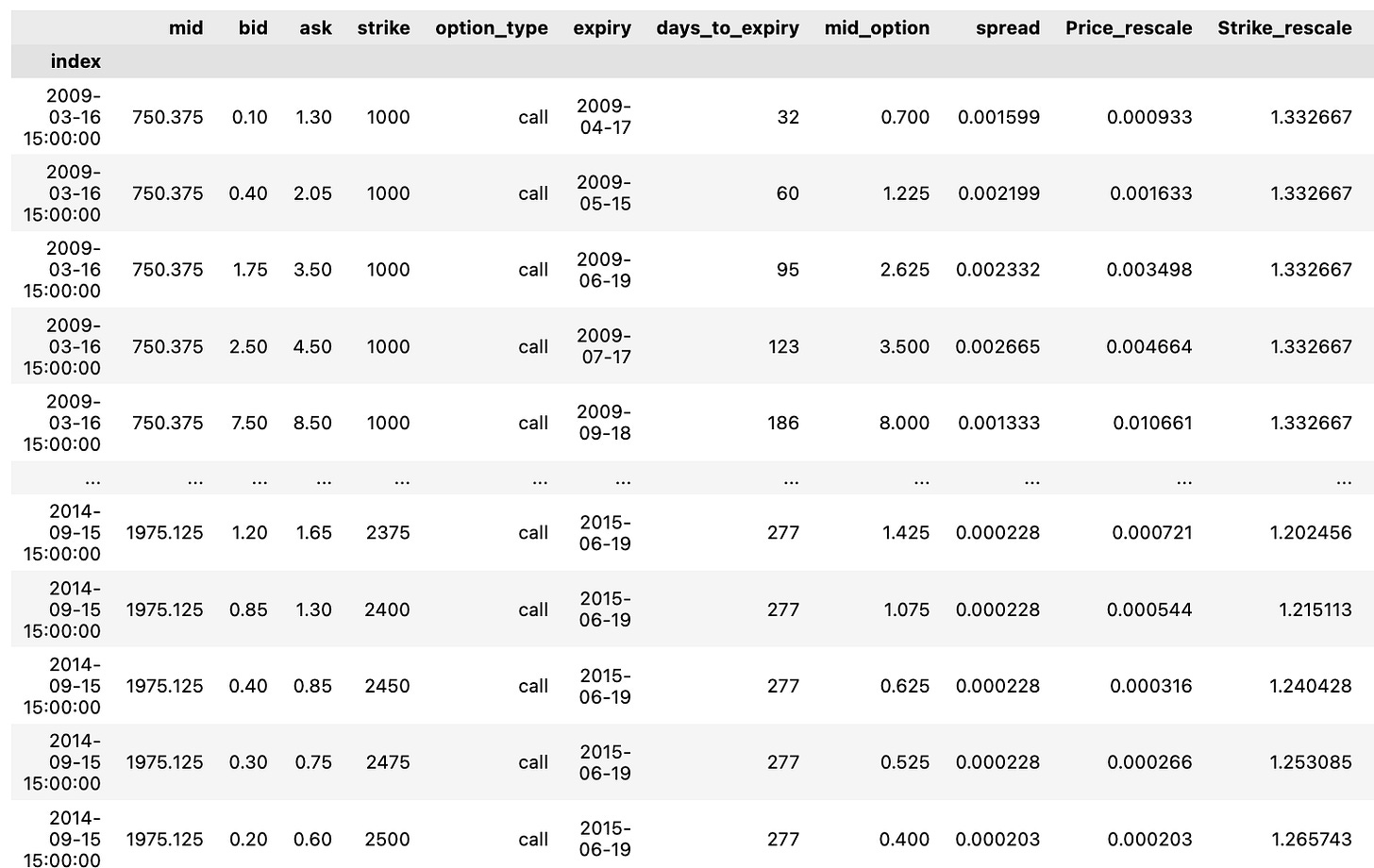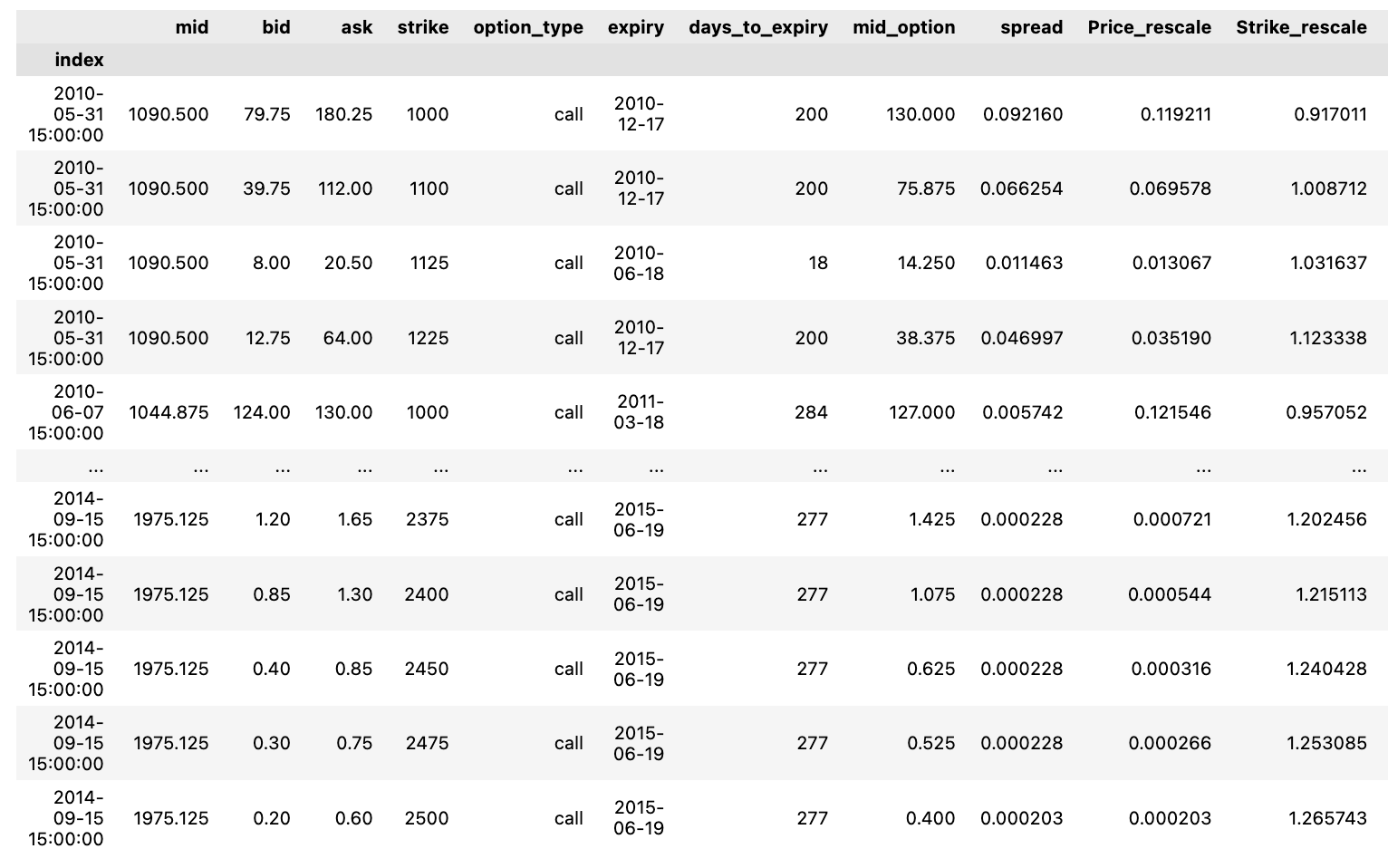 DF = pd.read_csv('/content/drive/MyDrive/Centrale Supelec/DeepLearningFinance/TD8/TP8_ES_options.csv.gz',compression='gzip',index_col=0)