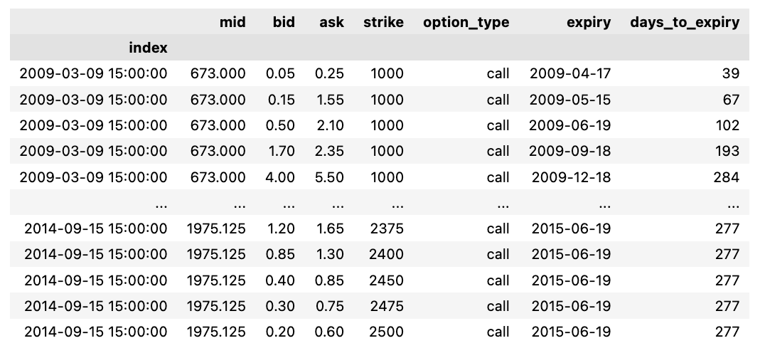 DF['mid_option'] = (DF.ask + DF.bid)/2 ; ## Mid Price de l'option