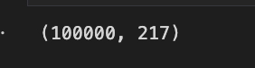 Subsequently, the code adjusts the weights by multiplying each by either -1 or 1, randomly chosen, allowing for negative weights that indicate short positions in a portfolio. The final output, the shape of the weights array, is (100000, 217), signifying the generation of 100,000 portfolios, each with weights for 217 different assets. This output confirms the successful creation of a vast array of diverse portfolios, crucial for analyzing various investment strategies in mean-variance optimization.