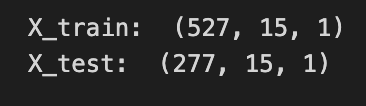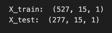 print(”X_test: “, X_test.shape)We want the model to see each stock sequence as a little stack of time-ordered observations, so the first two lines are about reshaping the training and test arrays into that 3‑dimensional shape. Think of reshaping like taking flat ingredients and arranging them onto trays: X_train.shape[0] is how many trays (samples) you have, X_train.shape[1] is how many bites or time steps go on each tray, and the final 1 says “one ingredient per bite” — that extra dimension is the feature count. An LSTM expects inputs as (samples, time steps, features), so here we explicitly create that structure by calling reshape with (X_train.shape[0], X_train.shape[1], 1) and the same for X_test.