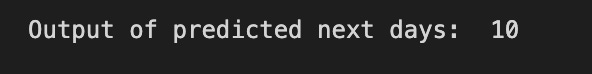 Here we ask the model to forecast the next 10 days — that means we try to predict the market values or returns for the coming ten trading days. Saying “next 10 days” just means we’re making ten future estimates in a row, not that the model sees those days now.