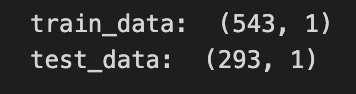 print(”test_data: “, test_data.shape)Imagine you’re preparing a deck of daily closing prices and you want to set aside most of the cards to practice your model, keeping the rest to see how well it learned; the first line figures out how many cards go into the practice pile by taking 65% of the total number of entries and converting that to an integer so you have a whole number of rows. The next line computes how many cards are left for testing by subtracting the training count from the total, which ensures your two piles add up to the full dataset — splitting data into training and test sets is a key concept for evaluating generalization.