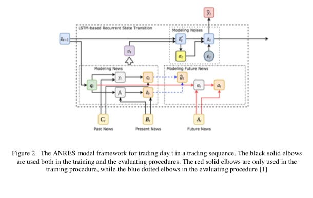Heyan Huang and Xiao Liu proposed a novel future event prediction module to factor in natural events consequences when predicting stock movements. ANRES models both noise and events over a recurrent stock value state, so it’s more explainable.