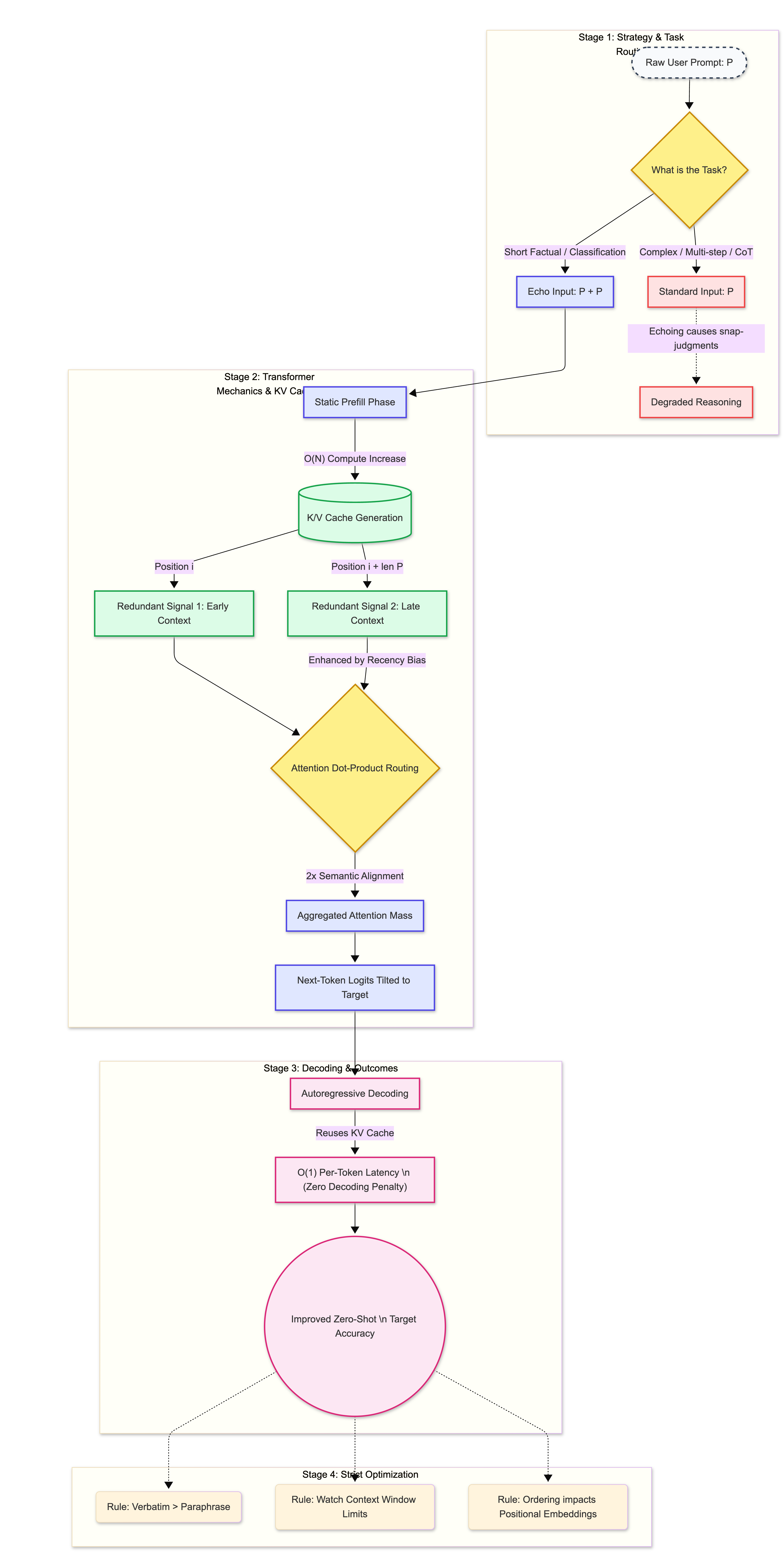 Here’s the simple, jaw-dropping takeaway: by verbatim-duplicating the user prompt inside the model’s context — an “echo” — off‑the‑shelf LLMs like Gemini, GPT, Claude and others get measurably better at short factual and classification tasks. The magic: you don’t ask the model to generate extra tokens, you don’t retrain it, and you don’t slow down decoding. You just put the same words in the input twice, and the model’s next-token probabilities tilt toward the right answers. Isn’t that delightfully tiny and surprisingly powerful?