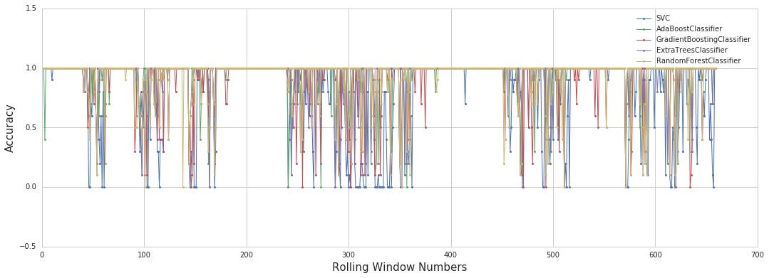 plt.xlabel(’Rolling Window Numbers’,size = 15)