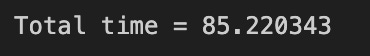 print ‘Total Time = %s’%(end-start)This snippet is a simple timing wrapper: it captures a timestamp immediately before invoking the core pipeline (start = time.time()), calls pip.pipline() — which is presumably the top-level data processing / trading pipeline that ingests market data, computes signals, and produces order instructions — then captures a second timestamp after that call and prints the difference as the total elapsed wall-clock time. The intent is clear: measure how long a single run of the pipeline takes so we can reason about latency and throughput.